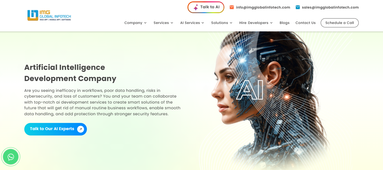 What differentiates IMG Global Infotech is its strong expertise in custom AI app development, including machine learning solutions, AI-powered chatbots, predictive analytics, recommendation engines, and intelligent automation systems. Their team focuses on building practical AI applications that deliver measurable business value.