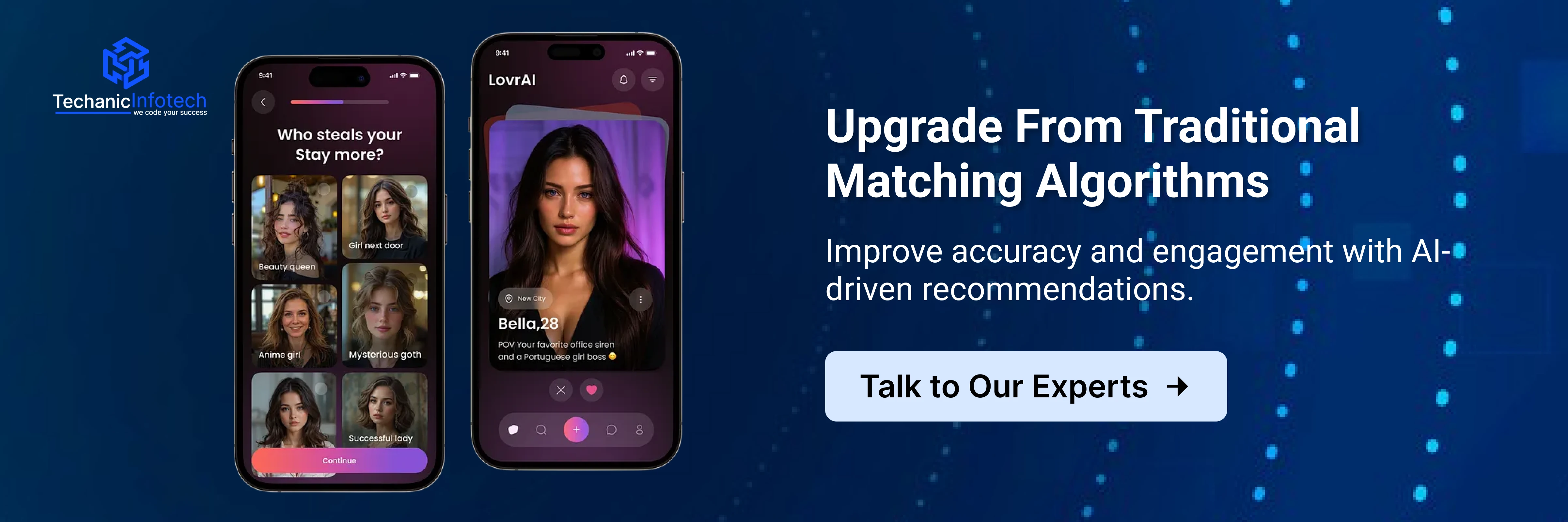 By combining advanced machine learning models with deep industry expertise, Techanic Infotech helps businesses move beyond basic matching logic to create meaningful user connections.