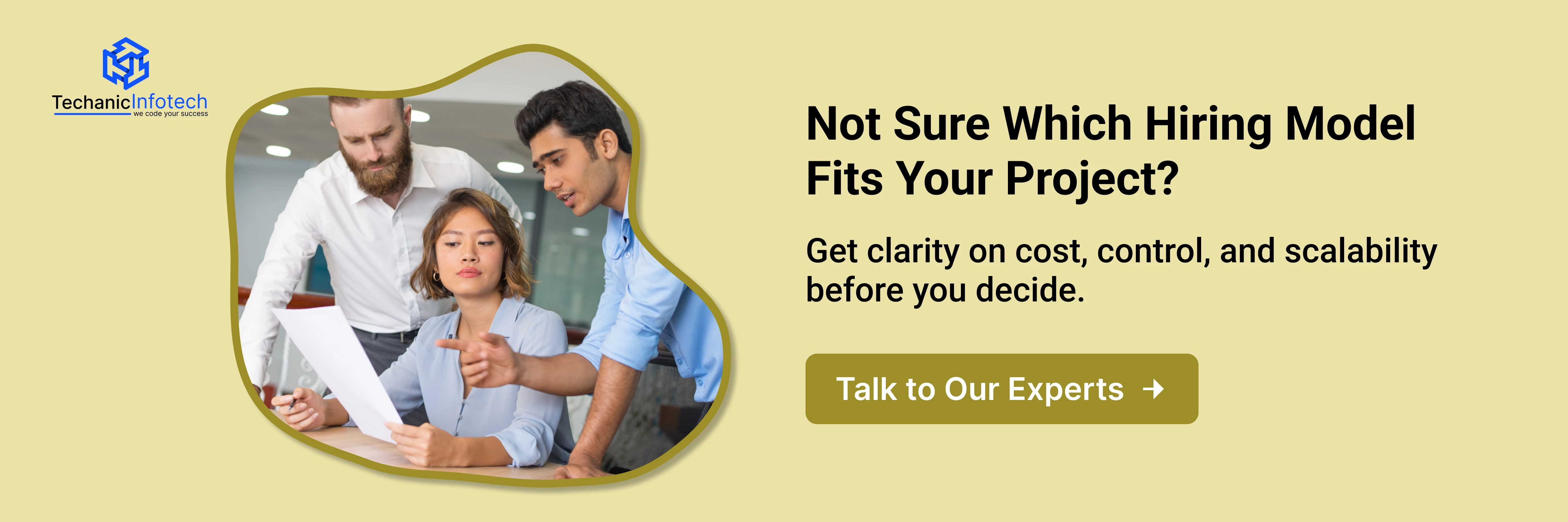 Techanic Infotech is the best mobile app development company that assists businesses in evaluating their project scope, technical needs, budget, and long-term vision before recommending the most suitable development model.