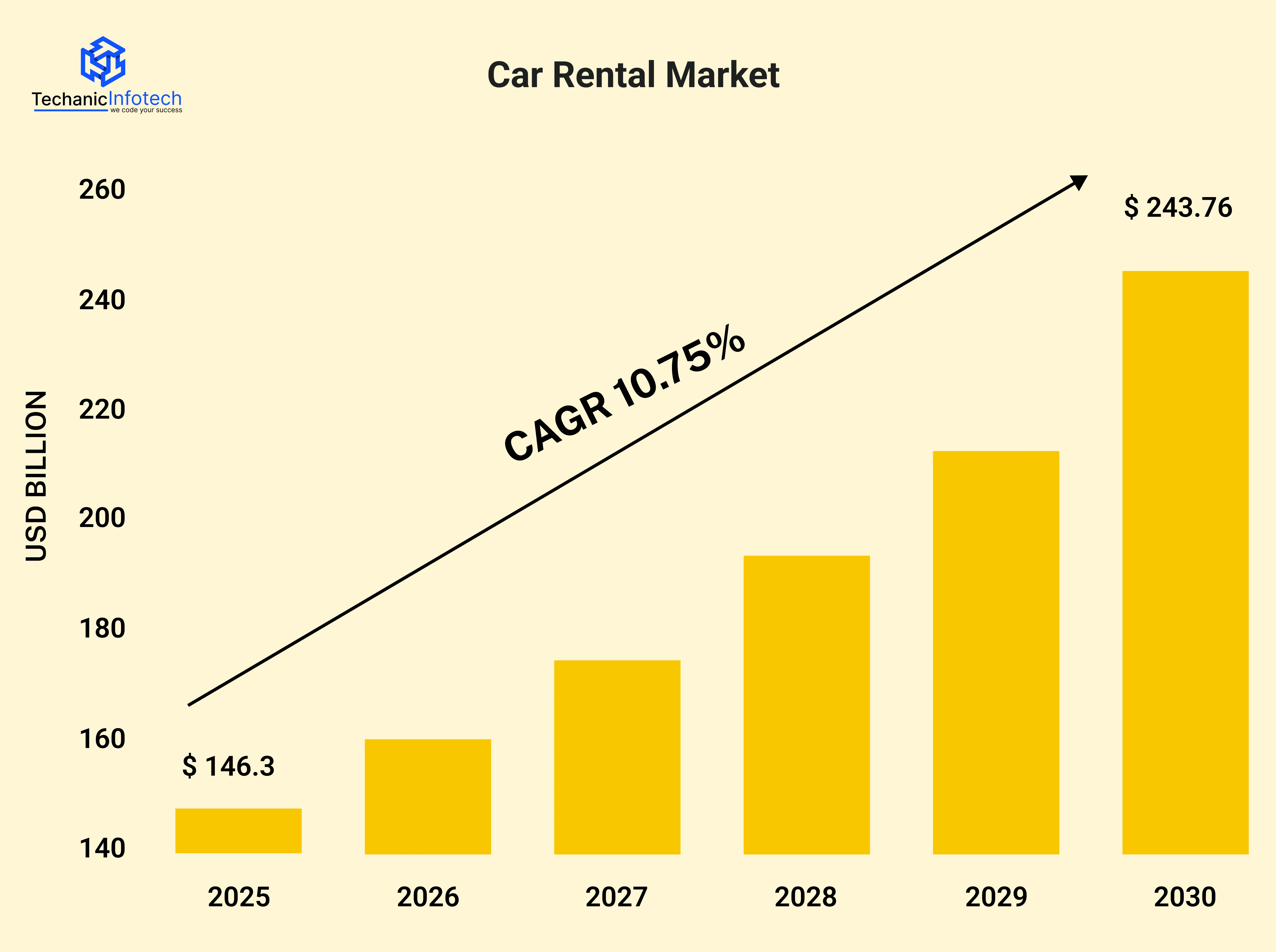 The global car rental market is projected to grow from $146.3 billion in 2025 to $243.76 billion by 2030, at a CAGR of 10.75%.