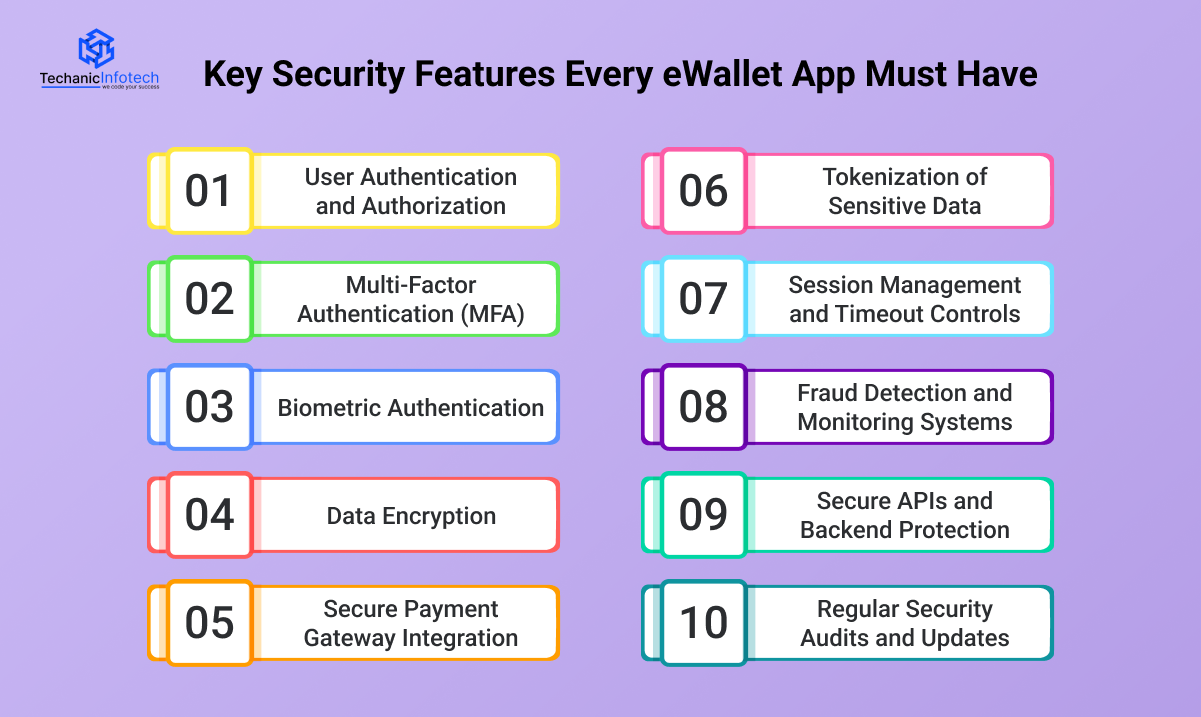 Below are the most important security features every eWallet app should include, along with the key benefits of each feature.