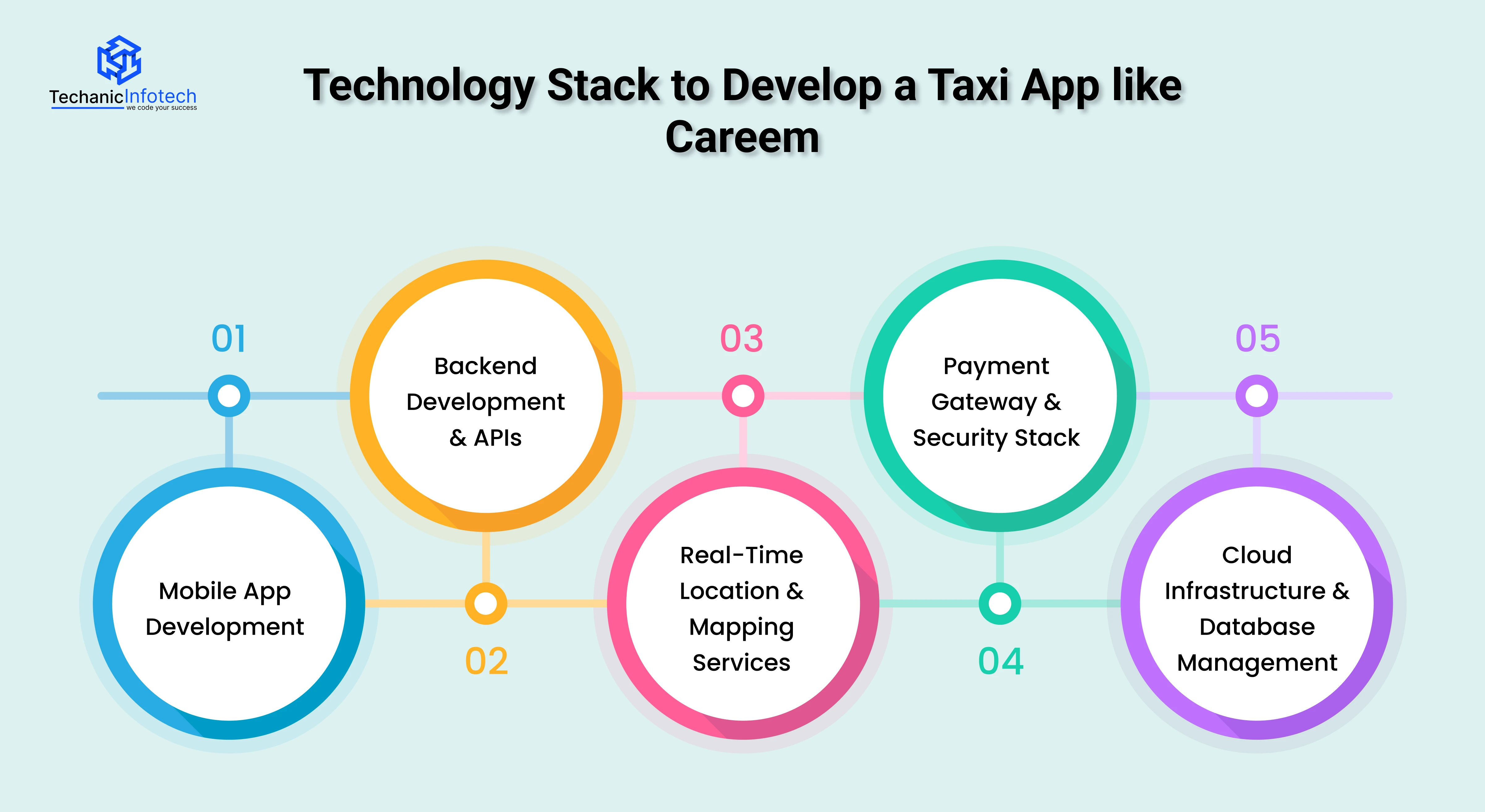 Building a taxi app like Careem requires a carefully selected technology stack that ensures scalability, security, and real-time performance.