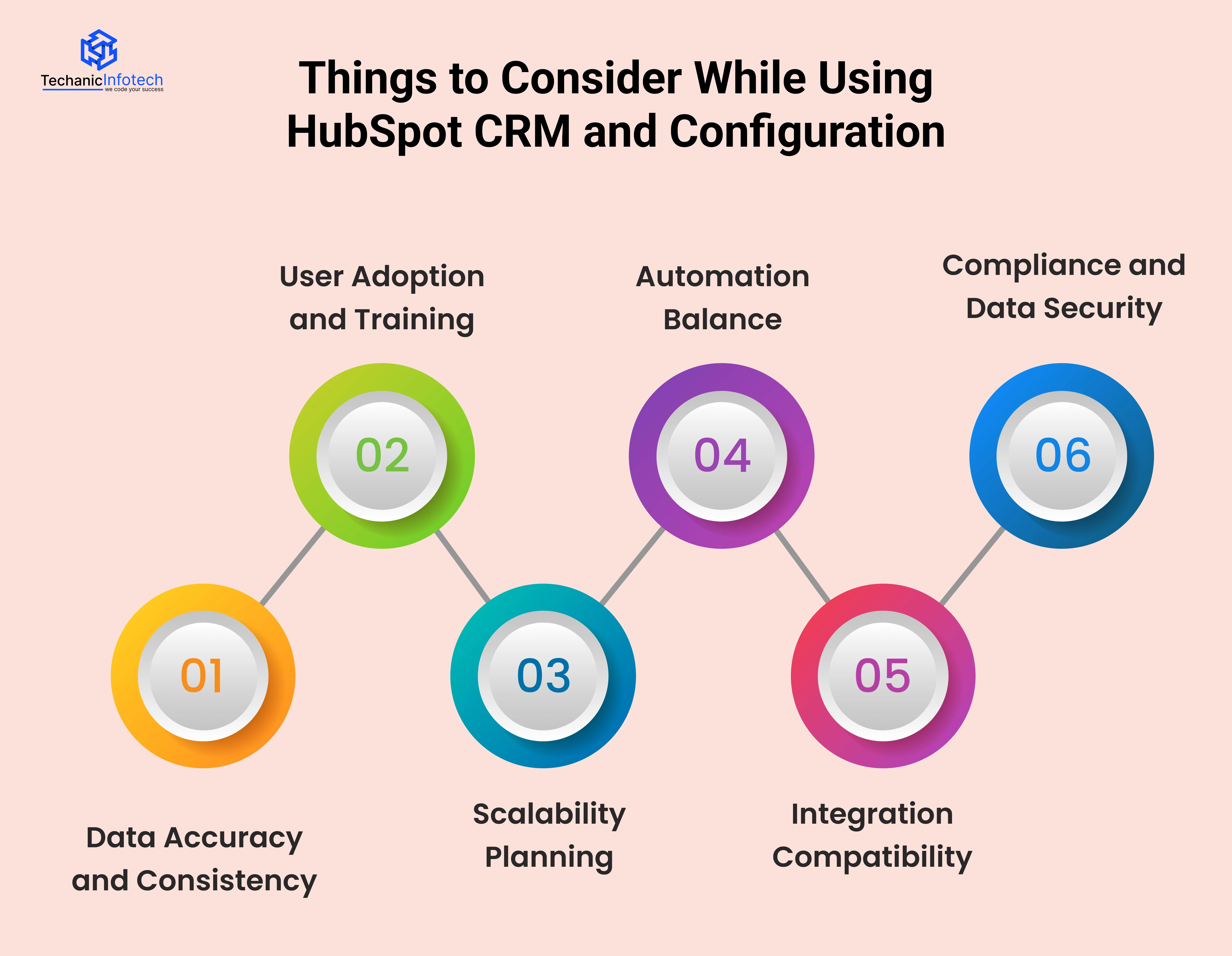 When using HubSpot CRM, it’s important to consider data accuracy, proper configuration, user adoption, integrations, and ongoing optimization to ensure the system aligns with business goals and delivers maximum value.
