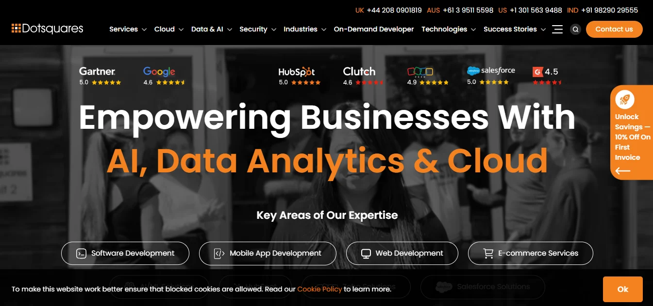 Specializing in web and mobile application development, eCommerce solutions, cloud computing, and enterprise software, Dotsquares helps organizations transform digitally and achieve operational excellence.