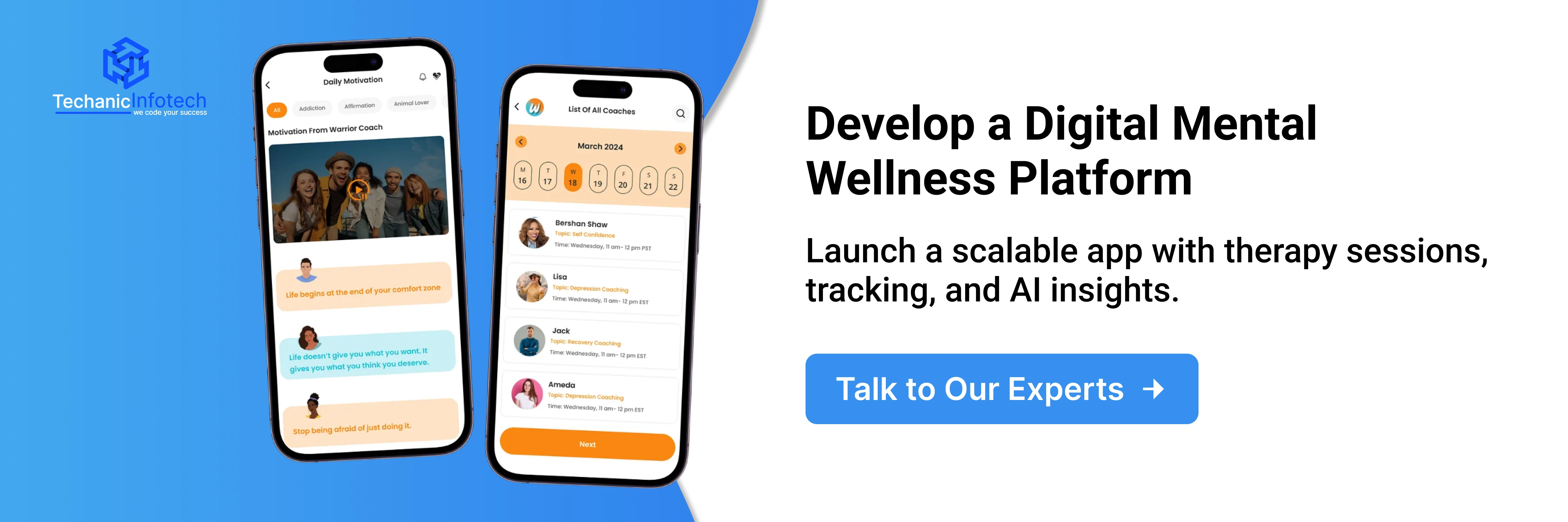 For organizations creating a mental health app, the goal is usually to provide continuous, on-demand support rather than one-time consultations.
