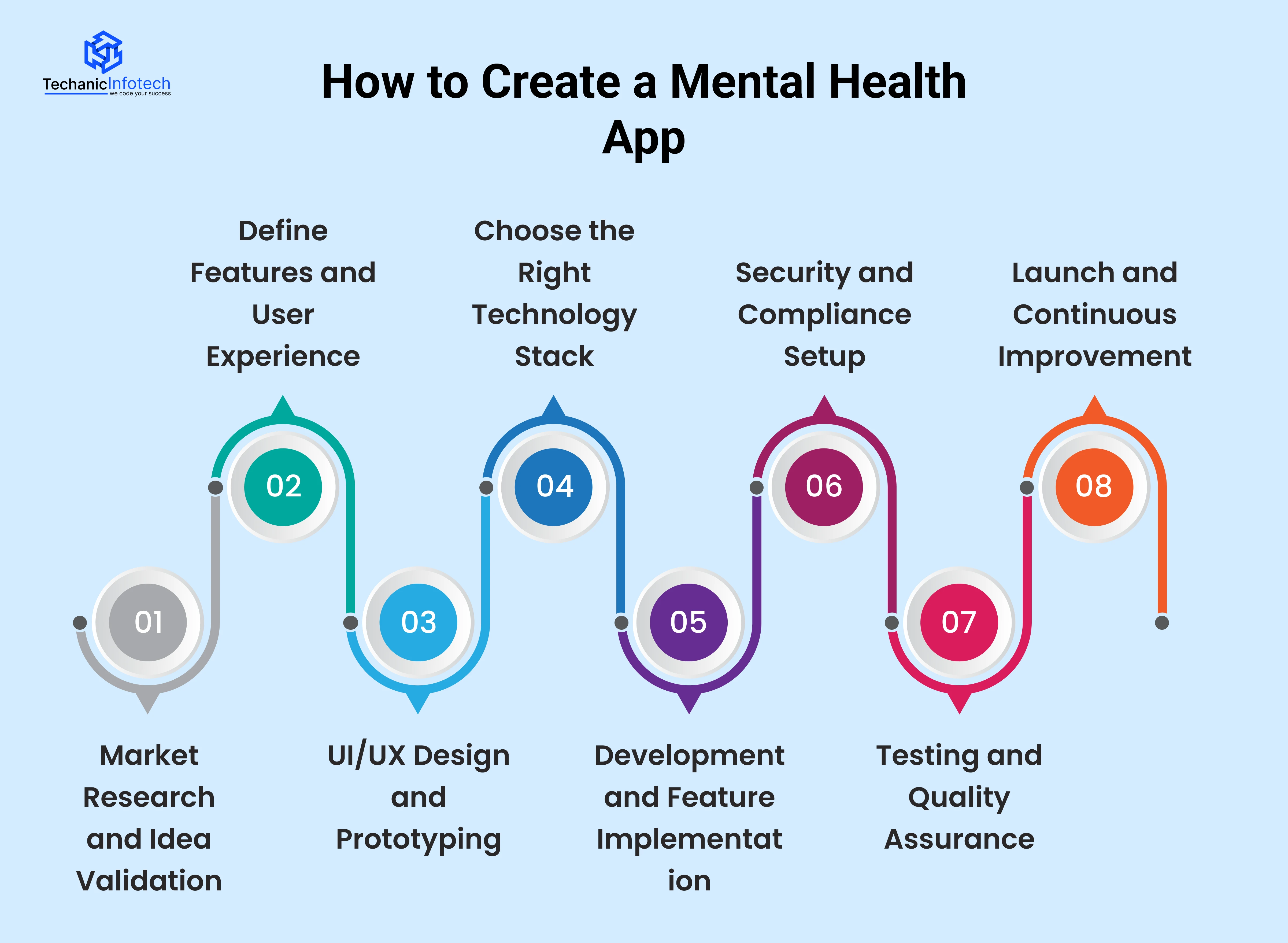 If you’re exploring how to build a mental health app, the process below outlines the key stages involved in developing a secure and user-focused solution.