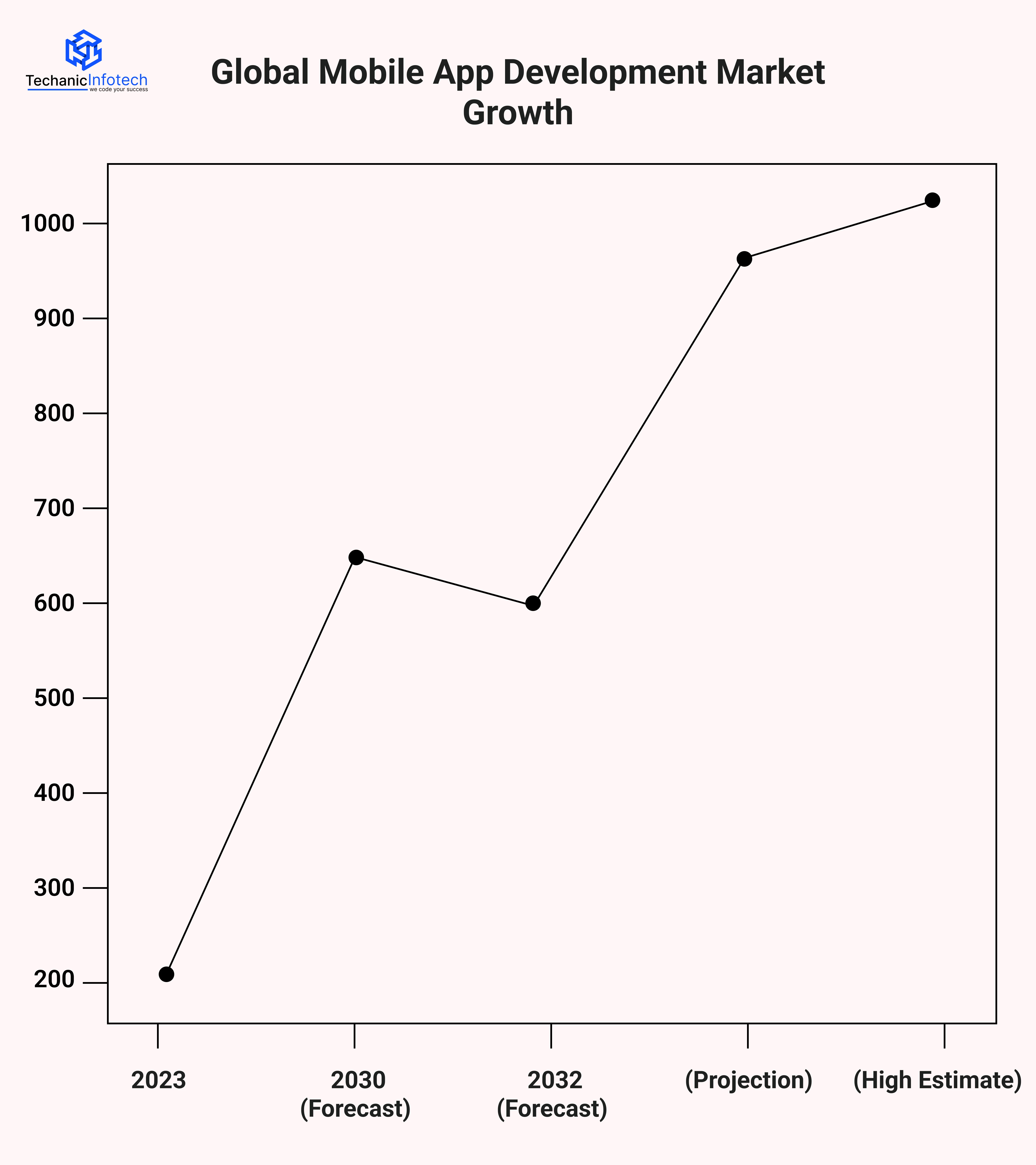 Strong growth is driven by increasing demand for mobile apps across enterprise, gaming, ecommerce, and on-demand sectors.