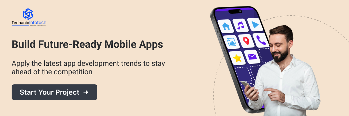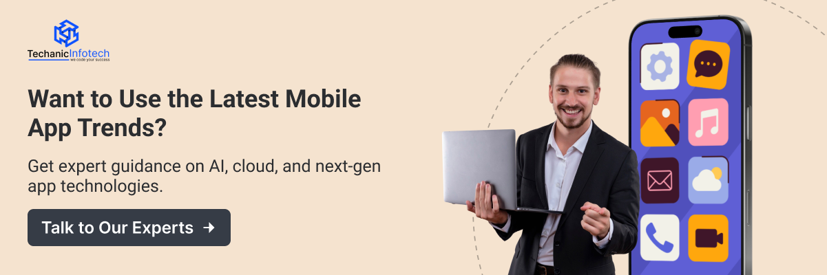 Techanic Infotech helps businesses analyze, select, and implement the most relevant mobile app trends to build scalable, future-ready applications.