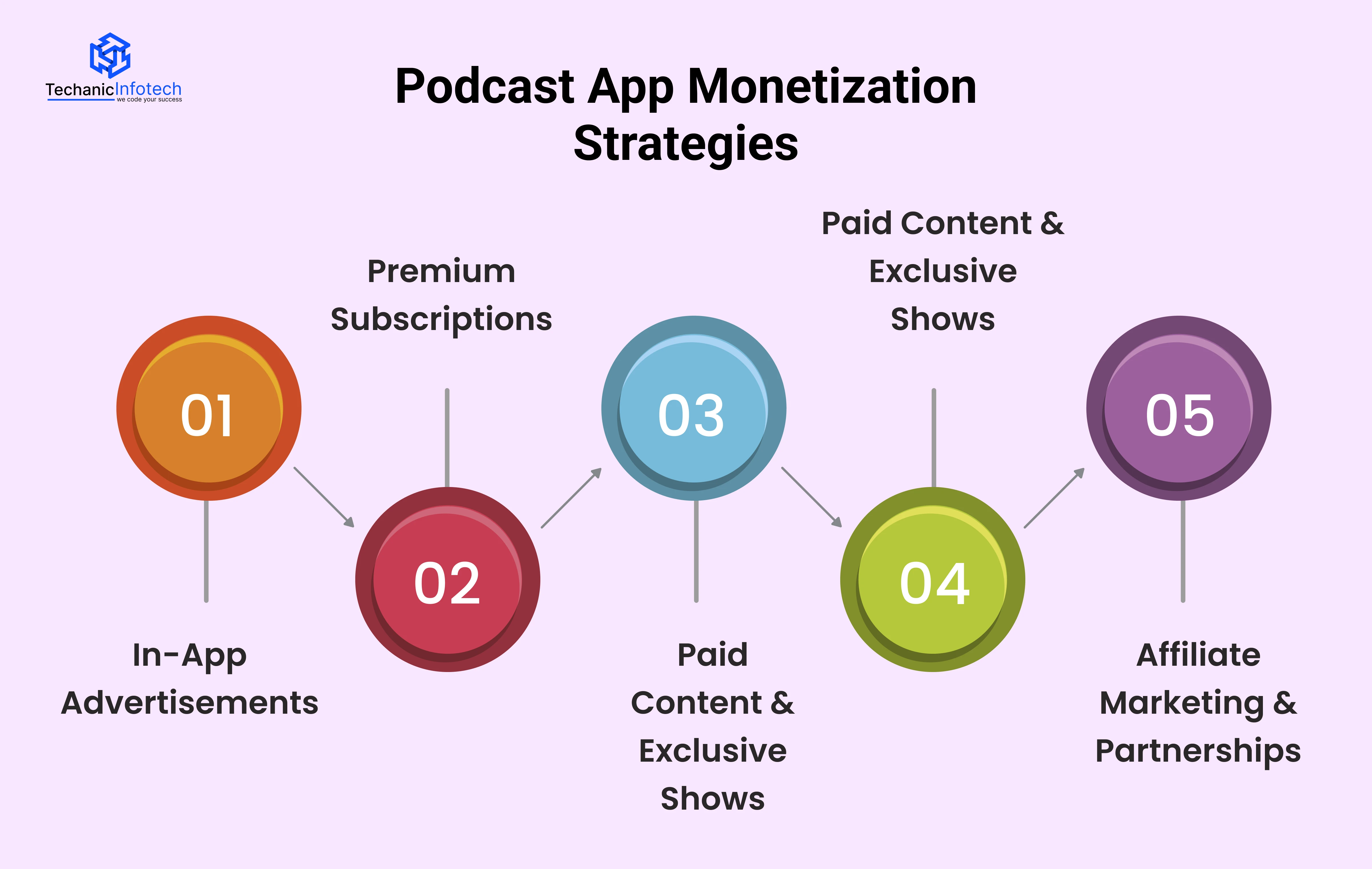 Ads remain a strong revenue driver for podcast apps. Brands pay for audio ads, display banners, or sponsored content placements. This lets apps stay free for users while still generating steady earnings.