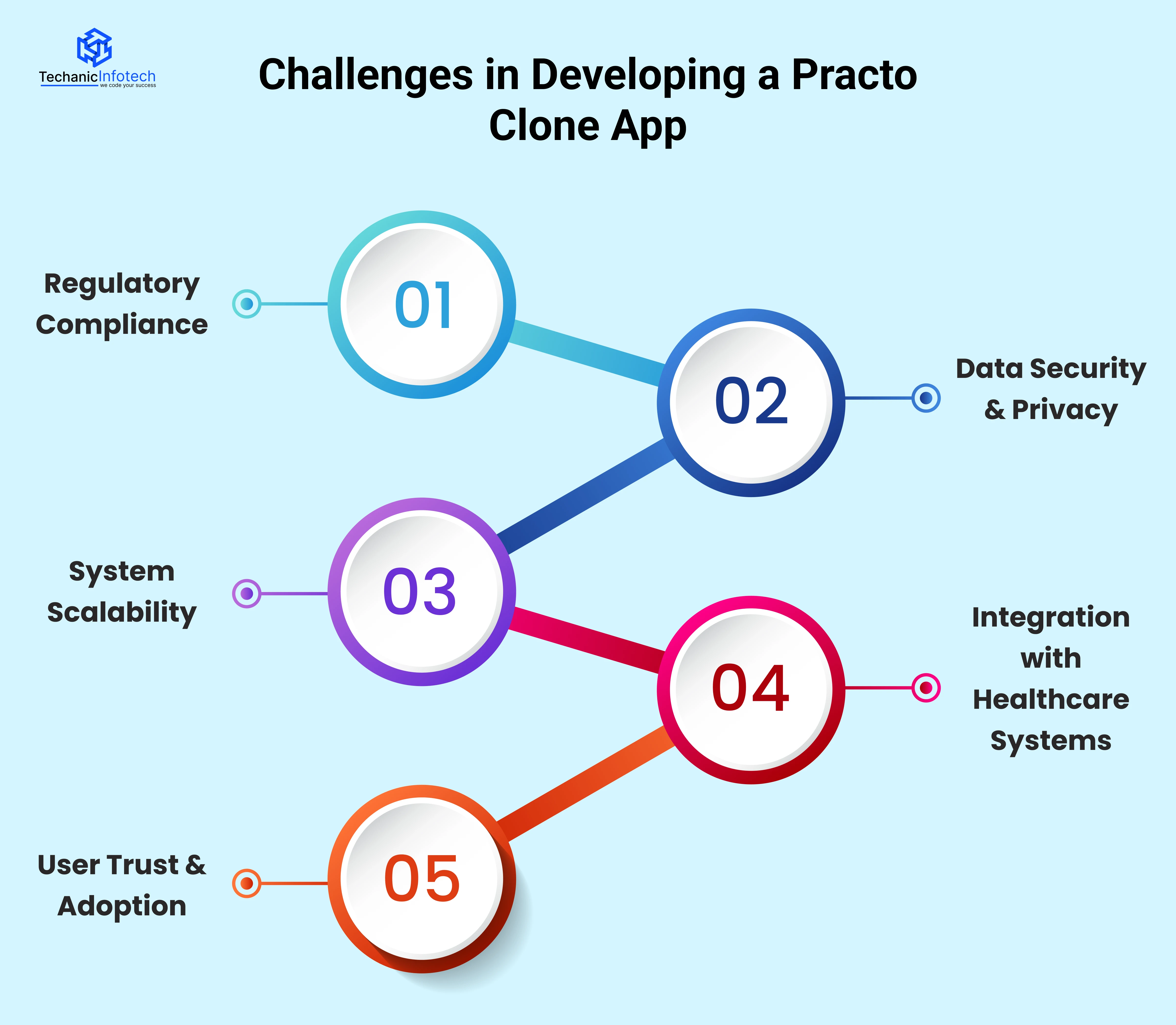 Since platforms like Practo handle sensitive medical data and real-time services, overcoming these challenges is critical for long-term success.