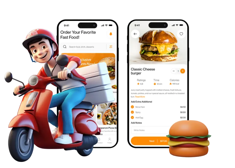Our food app development company is adept at creating robust restaurant apps that enhance the dining experience. We focus on food delivery application development that streamlines order placement, management, and delivery.